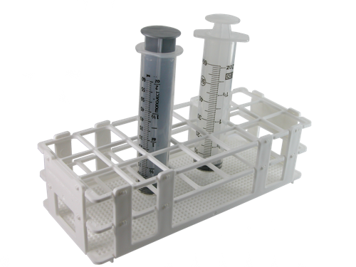 Plastic Syringe Racks are designed as syringe stand. Made of a special polypropylene, steam Autoclavable up to 121 deg C ( 250 deg F ), and will be able to stay submerged and maintain stability in water. They are easy to assemble and are stackable.